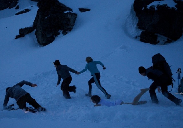 Нет, он, конечно, кропотливо проработал детали, и самые известные факты про гибель группы Дятлова в фильме показаны достоверно: откушенный язык, версия со сводящим с ума ветром, выживший десятый член экспедиции, загадочное поведение участников и т.д. Но все эти интересные факты раскрываются на фоне банальнейшего хоррор-антуража. Две сексуальные студентки, один университетский секс-символ, один "ботаник", один "таинственный" альпинист. Можно через минуту рассказать, кто с кем переспит, кого убьют первым и что будет дальше. А будут истеричные крики и метания, слезы и сопли на камеру с ночным видением, русские Иваны, пьющие самогон и говорящие по-английски весьма сносно, непонятные твари, появляющиеся из ниоткуда, в самый неожиданный момент, чтобы напугать подростков и впечатлительных барышень. Словом, все самые избитые и заштампованные ходы, которые когда-то впечатляли в "Ведьмах из Блэр", а теперь могут напугать разве что тех, кто впервые решился посмотреть фильм подобного жанра.