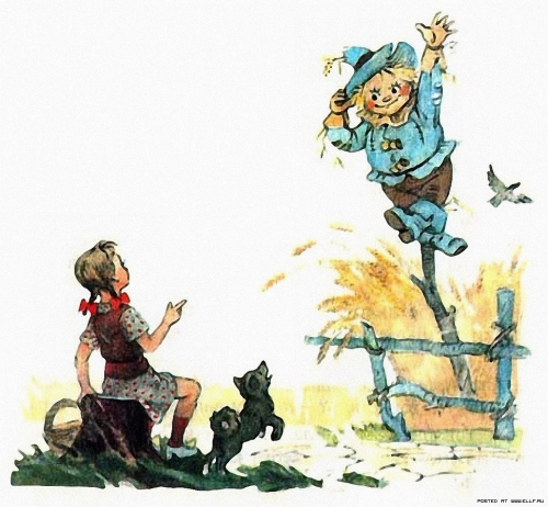 А в ожидании фильма Диснея вспомним, кому еще удавалось подобрать ключик от дверей в Волшебную Страну. С детства у меня сохранилась книжка с удивительными рисунками Леонида Владимирского – та самая, с улыбающимся Страшилой на обложке, с таинственной пещерой злой Гингемы и отдающим честь Длиннобородым Дином Гиором… Эх, спасибо издателям за мое счастливое детство! Тогда-то я и полюбил сказки.