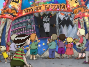 Говорят, главное условие успеха любой детской сказки – герои ее должны вызывать сочувствие или желание походить на них. В случае с героями "Возвращения Буратино" - этого, увы, не происходит. Просто потому что нельзя сочувствовать персонажам, в которых полностью отсутствует объемность характеров, а прорисовка героев столь невыразительна, что даже толком не понять – когда именно и какие эмоции испытывают персонажи в каждом конкретном случае. У Пьеро по любому поводу вид замученной жизнью белой моли. Мальвина мало чем отличается от длинноногих Гламурниц - разве что отсутствием этих самых длинных ног. А Буратино… Буратино и выглядит как материал, из которого он собственно должен быть выструган. Самые несчастные герои фильма – а именно, выкинутые Мишка, Кукла и Зайка (которого бросала хозяйка под дождем остался зайка) - отдаленно напоминают и куклу Чаки, и прочих героев некоторых фильмов ужасов. Отдельного упоминания заслуживает наличие в картине ужасного культурного гибрида – матрешки с китайцами внутри. Собственно, один из этих самых китайцев и подбивает остальных брошенных кукол к восстанию против кровавого диктатора господина Баскара (он же бритый Карабас).