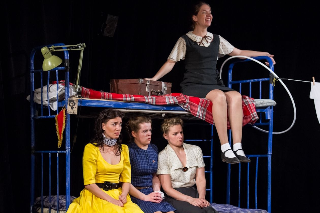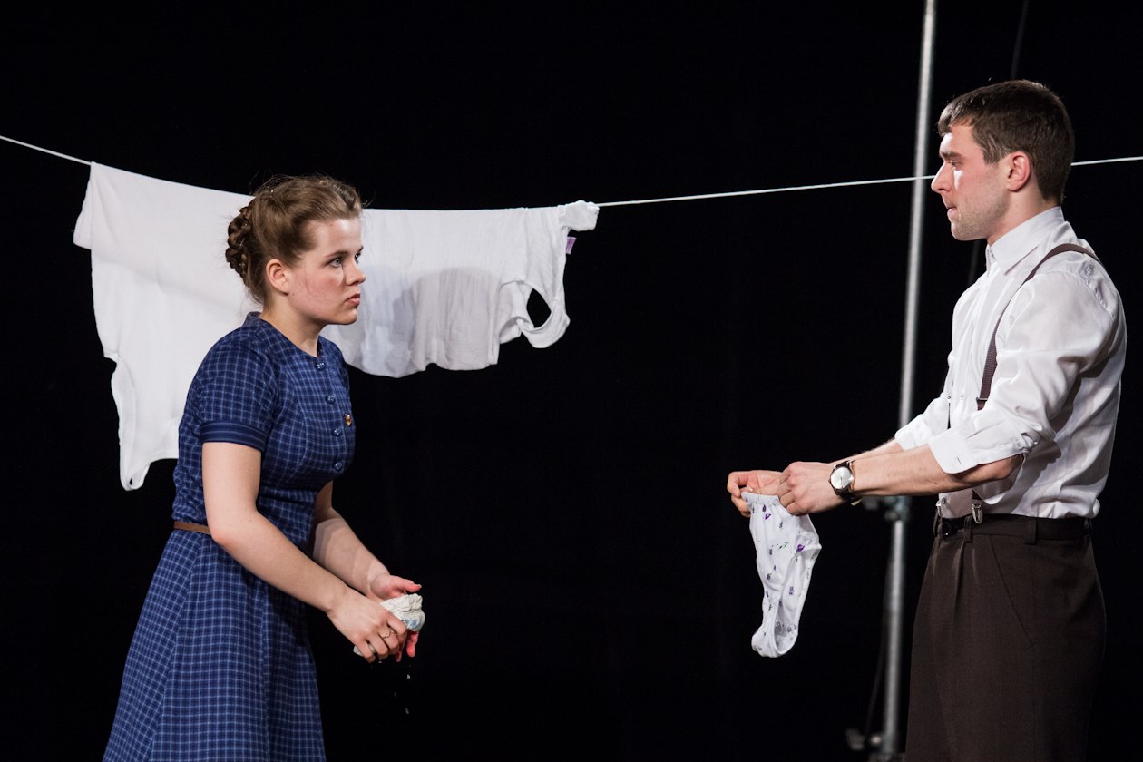 Нравы были в 50-х годах – тогда Александр Володин написал пьесу "Фабричная девчонка". Худрук новосибирского "Первого театра" Павел Южаков воссоздал обстановку эпохи, хотя ни он, ни актеры ее не застали. На сцене во всей красе представлен общажный быт с его железными кроватями, алюминиевыми тазиками, чугунными утюгами, желтой оберточной бумагой, допотопной кинокамерой, в которой стрекочет пленка. Юноши бегают с потертыми дипломатами, а то и вовсе с чемоданами, перевязанными ремнями. Девушки одеты и причесаны по последней моде тех лет. И даже лица у них володинские, с какой-то неуловимой печатью той эпохи.
