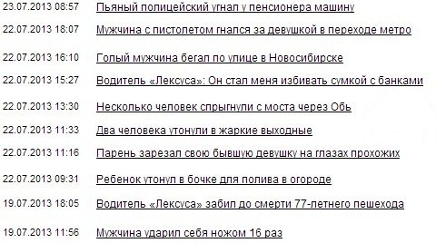 Ближе к середине июля новосибирские новостные ленты превратились в сплошное кровавое месиво. И выглядели примерно так: