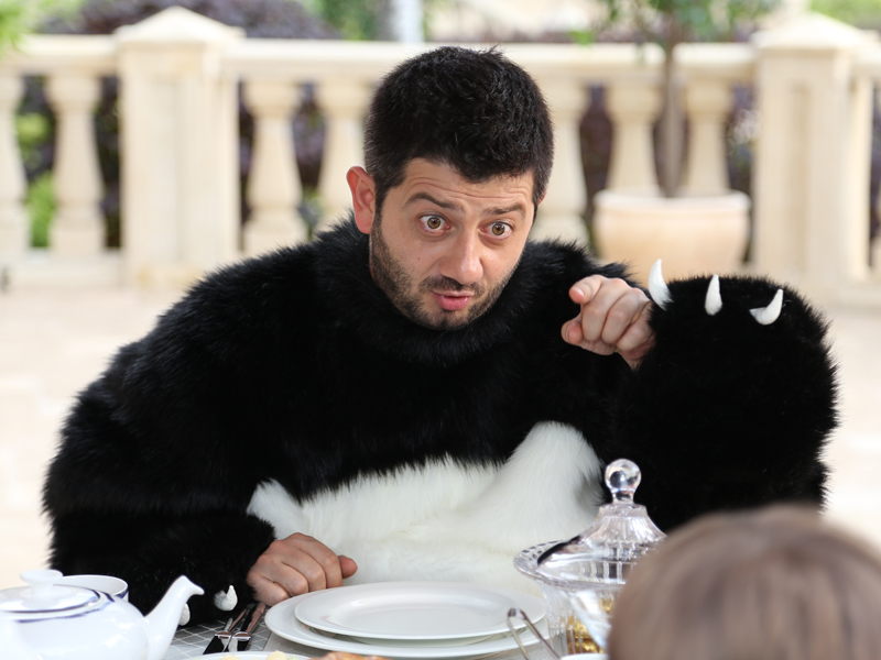 Михаил Галустян: Вы знаете, словосочетание «принять участие в съемках» для меня подразумевает, что я сам должен все это организовать. «Подарок с характером» был создан нашей компанией Fresh Film. Объясню, почему мы ее создали – мы поняли, что если хочешь, чтобы получилось хорошо, нужно сделать все самим. До этого у меня был опыт участия в картинах в качестве актера, но я не мог воздействовать ни на продюсера, ни на режиссера. Я с актерской задачей справлялся, а все остальное оставляло желать лучшего. Для меня всегда было важно понимать, что я играю, но если я понял, внес частичку себя, я могу сыграть не хуже чем профессиональный актер. Хотя мне пришлось «ужимать» себя потому что я привык играть широко – по театральному, чтобы на 25-ый ряд донести эмоции. Режиссеры даже говорили: «Ты так сильно не делай (выпучивает глаза – прим.ред.) - люди испугаются, только чуть-чуть – бровкой». Подстроился, в общем: слава богу, между КВНом и кино был колоссальный опыт работы в передаче «Наша RUSSIA» - там меня и обстругали под киноформат, чтобы я работал на камеру, а не на 25-ый ряд.