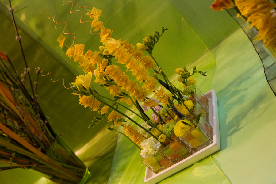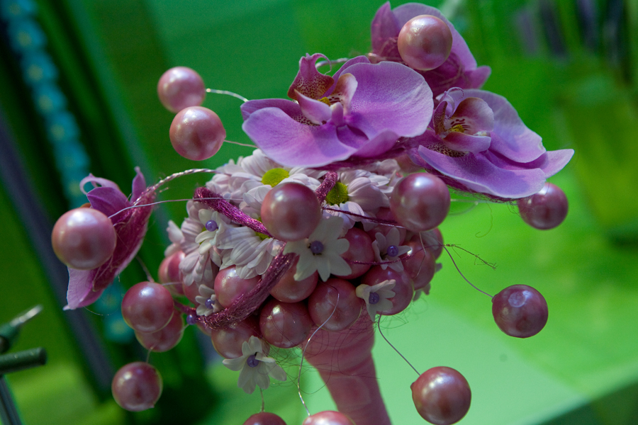 А Александр рассказывал о том, как оформлял "большую и навороченную свадьбу". Рассказывает он без пафоса и снобизма, с юмором: "Клиент, конечно, всегда прав, но иногда я стараюсь клиента переубедить – не люблю делать красные букеты к белым платьям". И, пока он в рамках мастер-класса "Свадебный флер", выдает новые идеи и тенденции в оформлении букетов и торжеств, на штативе перед ним "вырастает" светло-зелено-голубое чудо. Нечто среднее между букетом невесты и браслетом на руку – с цветами и бусинами. Для Александра, впрочем, это не экстраординарно – одна невеста, например, попросила его сделать букет в виде… кометы. Сделал.