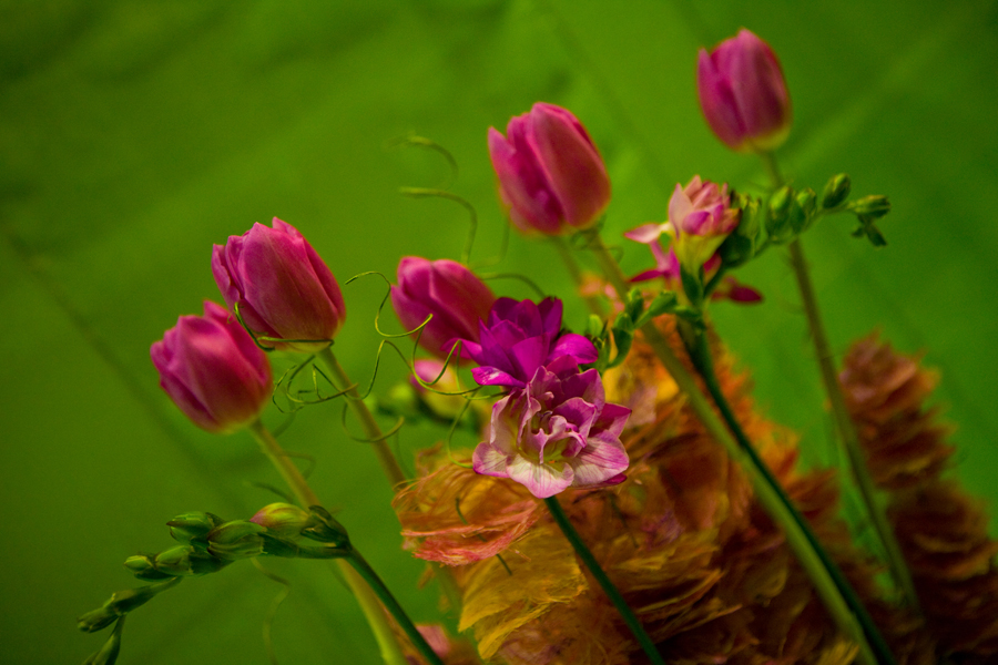 Звезда флористики из Санкт-Петербурга показал класс новосибирским профессиональным цветочницам и дал советы всем любителям, интересующимся искусством составления букетов. Кроме традиционных свадебной и весенней тем выставку украсили актуальные пасхальные композиции, а среди материалов для будущих букетов можно было встретить решительно все, что угодно, даже монтажную пену.