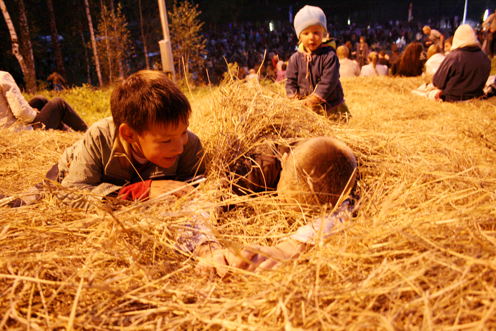 Кто-то просто прохаживался, любуясь закатом, кто-то сидел на скамеечке и мерно хлопал в ладоши в такт балалайке, особо свободолюбивые валялись на стоге сена. Но не было привычных палаток и костров, создающих ощущение уюта, дома, родства со всем и всеми, кто тебя окружает. Этого духа единения и атмосферы чего-то волшебного, но привычного, действительно очень не хватало.