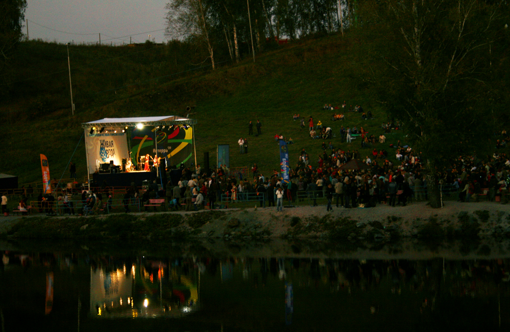 И потому 11 сентября таки прошла 10-я юбилейная "Живая вода". Местом проведения был выбран парк отдыха наукограда Кольцово. Надо признать, место просто шикарное! Главная сцена фестиваля расположилась рядом с озером и невысоким холмом, откуда была видна вся фестивальная поляна, а также удобно было наблюдать за происходящим на сцене.