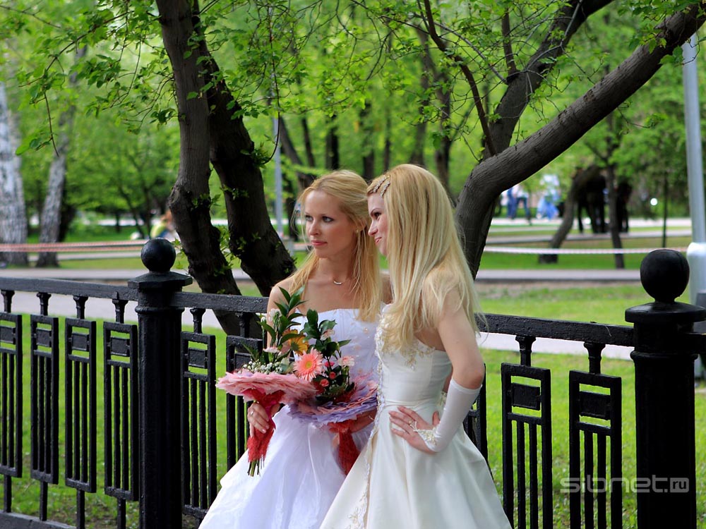 Но если заглянуть под кружевной подол акции, то обнаружится небольшая скользковатая несостыковочка. Вот, например, в этом году время проведения акции (суббота, 29 мая) совпало с мероприятием "Сбежавшие невесты", которое ежегодно устраивает журнал "Космополитен" в последнюю субботу мая. Мария уверяет, что новосибирское движение появилось раньше и значительно отличается от столичного "забега". В чем различия: в сибирском варианте участвуют исключительно незамужние девицы, тогда так нестрогая столица приглашает всех – от дебютанток до мамочек с детьми, желающих "тряхнуть стариной" (в смысле, еще разок, пусть и без серьезного повода, надеть подвенечный костюм). Кроме того, Москва ждет только белые и кремовые наряды, а Новосибирск в своем "Кураже" готов принять любые. Впрочем, барышни этой возможностью не воспользовались – что в прошлом году, что в нынешнем; свадебная девичья фантазия ограничилась лишь красными оборками.