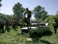 Тем временем, на поляне развернулись костюмированные бои на мечах. Зрители наблюдали за действом, забравшись на крыши автохлама. Самые активные прошли мастер-класс по метанию копья, те, кому удалось добиться в этом деле успехов, вознаграждены сувенирами.