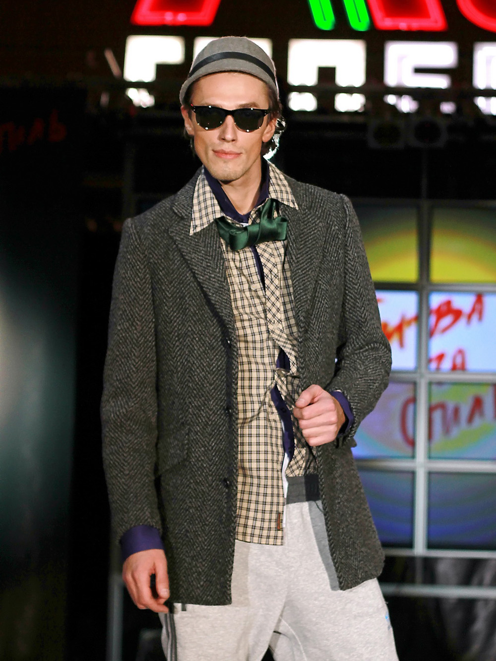 Что касается сильного пола, то Виктор Феоктистов (черный пуловер, открывающий воротничок и манжеты белоснежной рубашки, укороченные рукава, художественно завязанный серый шарф, обилие аксессуаров на руках – напульсники, кольца, часы с браслетом зооморфной расцветки) заметил, что на улицах Новосибирска встречаются хорошо одетые мужчины, но преобладают те, кому… гардероб подбирают женщины. А они традиционно склонные к ошибке, корректно названной Людмилой Соловьяновой "непонимание своего роста и веса":