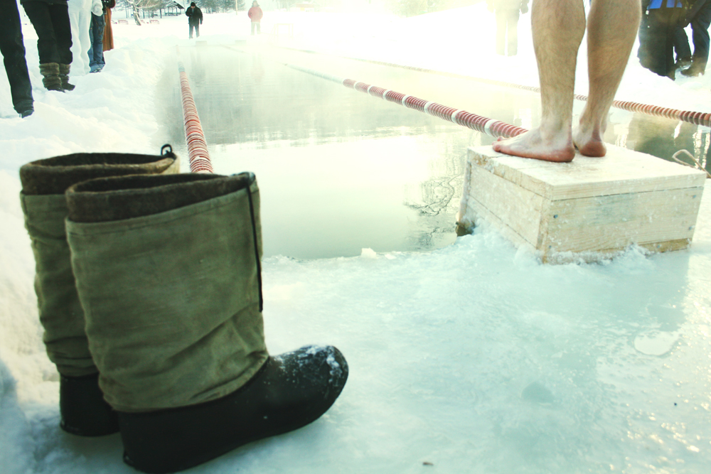 В относительно теплых и просто жарких странах многие полагают, что все русские – поголовно моржи, мол, климат обязывает. Но даже у сибиряка от мысли нырнуть в прорубь кровь стынет в жилах! Однако смельчаки всегда найдутся. Эта двадцатипятиметровая прорубь как раз для таких. География соревнований серьезная: Новосибирск, Алтай, Тюмень, Красноярск, Пермь, Чебоксары, Мурманск, Москва. Все участники – профессиональные моржи и спортсмены. Талисманом соревнований стал "полярный мишка" из Барнаула, который пел песни, плясал и уговаривал пловцов не сдаваться раньше финиша.