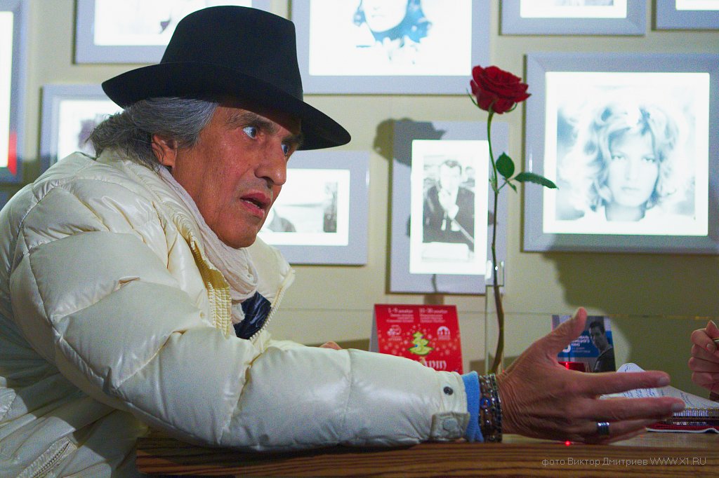 На пресс-конференцию знаменитый композитор и певец Сальваторе (это полный вариант имени) Кутуньо явился в белой дутой куртке поверх голубого свитера, шею музыканта согревал элегантный шарф, а руки украшали кольца и браслеты. На роскошной шевелюре – когда-то длинной и иссиня-черной, а ныне – стильно укороченной и с проседью, красовалась черная шляпа, а зеркальные темные очки (такие в кино носят итальянские мафиози и американские шерифы) скрывали взгляд.