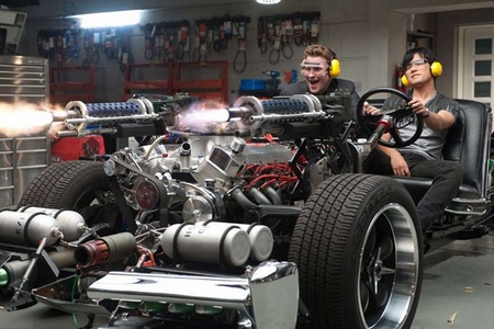 История, на самом деле, довольно банальная – все крутится вокруг сурового бизнесмена с огромным состоянием и его сына, с которым, разумеется, отношения натянутые. Батюшка, как и положено, трагически умирает, а непутевому отпрыску достаются все богатства. И тут появляется кто-то, кто начинает наследнику вправлять мозги – в данном случае, гениальный личный механик почившего миллионера, питавшего слабость к красивым автомобилям. Ну, и поскольку кино про супергероев, развеселая парочка надевает маски, садится в тюнингованный ретромобиль и начинает всеми доступными средствами вершить возмездие. Никаких пафосных суперменов в картине не фигурирует, поэтому возмездие вершится абы как, бессистемно, зато с шутками и прибаутками. Гуманизм, присущий Человеку-Пауку сюда тоже не завезли, и со злодеями Зеленый Шершень вовсе не церемонится. Действительно, зачем тратить деньги налогоплательщиков на содержание в тюрьме производителей наркотиков, если можно просто сжечь их всех вместе с лабораторией?